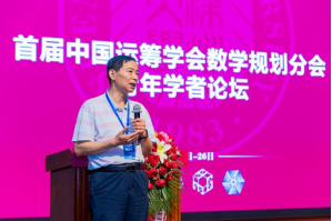 接下来进入学术汇报环节,分别由北京工业大学徐大川教授、四川大学黄南京教授、云南大学郑喜印教授和福州大学朱文兴教授主持。中国工程院外籍院士、香港中文大学(深圳)副校长罗智泉教授发表了题为“Finite Horizon Optimization”的主题报告,讨论了如何在固定时间预算下解决优化问题,并且介绍了有效解决这种高度非凸问题的最新进展。清华大学邢文训教授介绍了不确定线性控制系统上矩阵优化问题的半定规划逼近。中国科学院数学与系统科学研究院陈旭瑾研究员讨论了IBP在非原子自私出行者网络中不发生的条件。中国科学院大学郭田德教授给出了组合优化机器学习求解方法的一般框架,并总结了该领域近几年的研究进展。