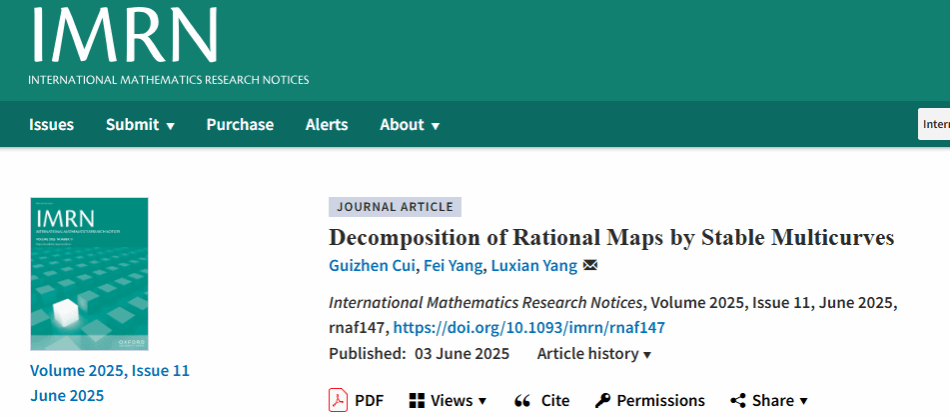 崔贵珍教授与副研究员杨璐鲜,联合南京大学数学学院杨飞教授共同完成。该论文发表于国际著名期刊 《International Mathematics Research Notices》。