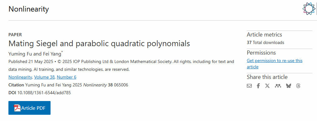 03 论文题目:Mating Siegel and parabolic quadratic polynomials