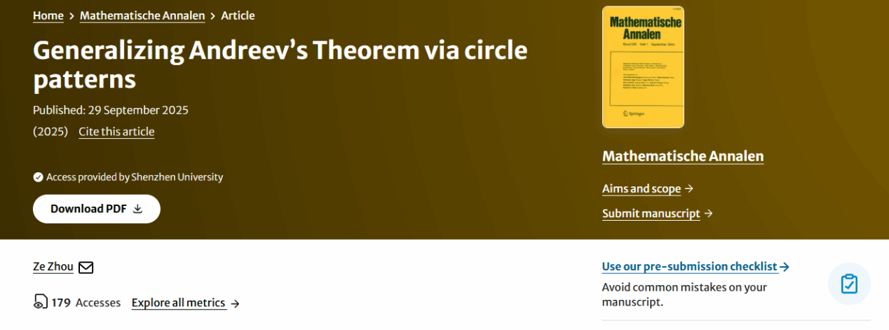 周泽教授独立完成。该论文发表于国际著名期刊《Mathematische Annalen》。