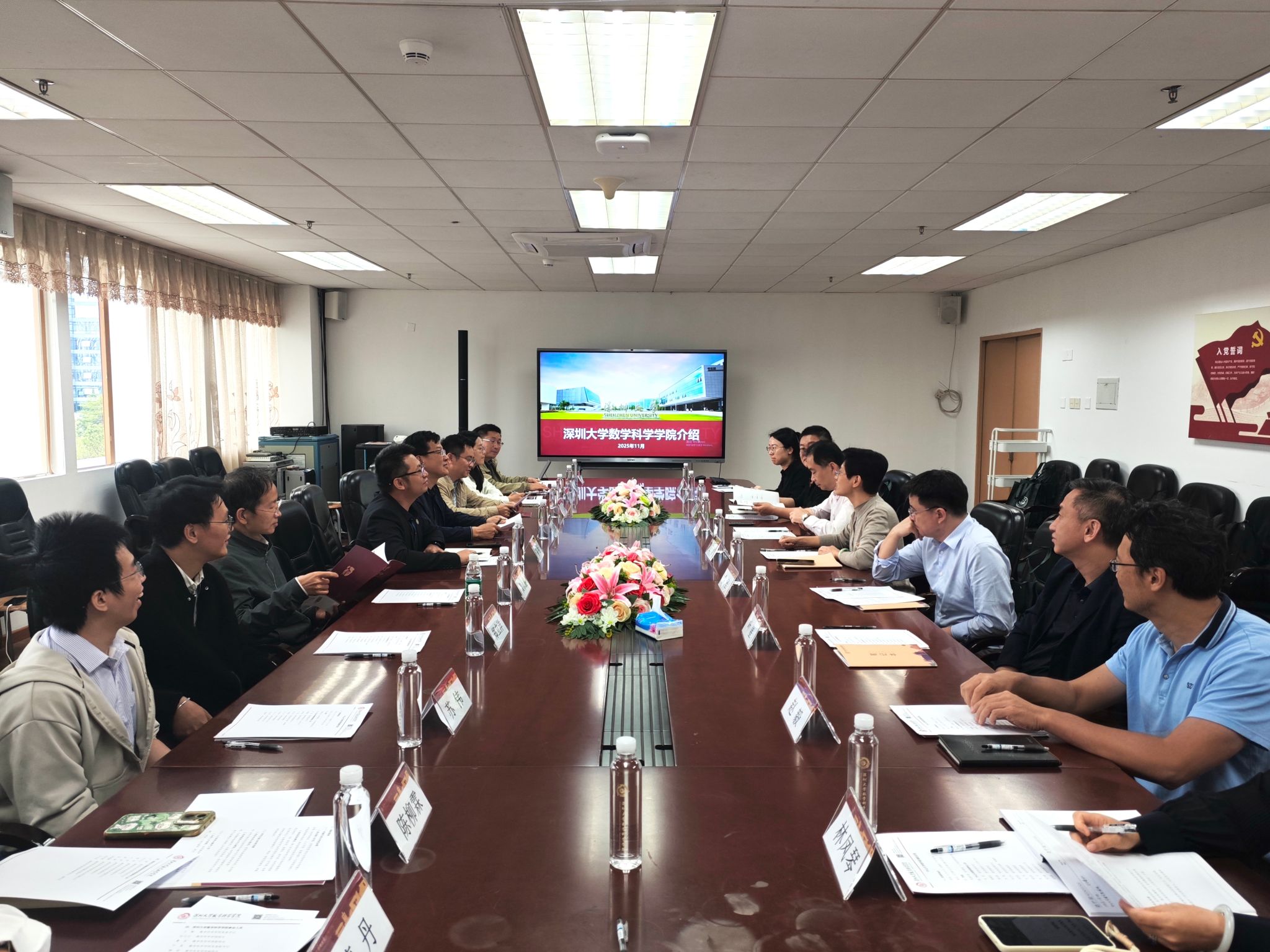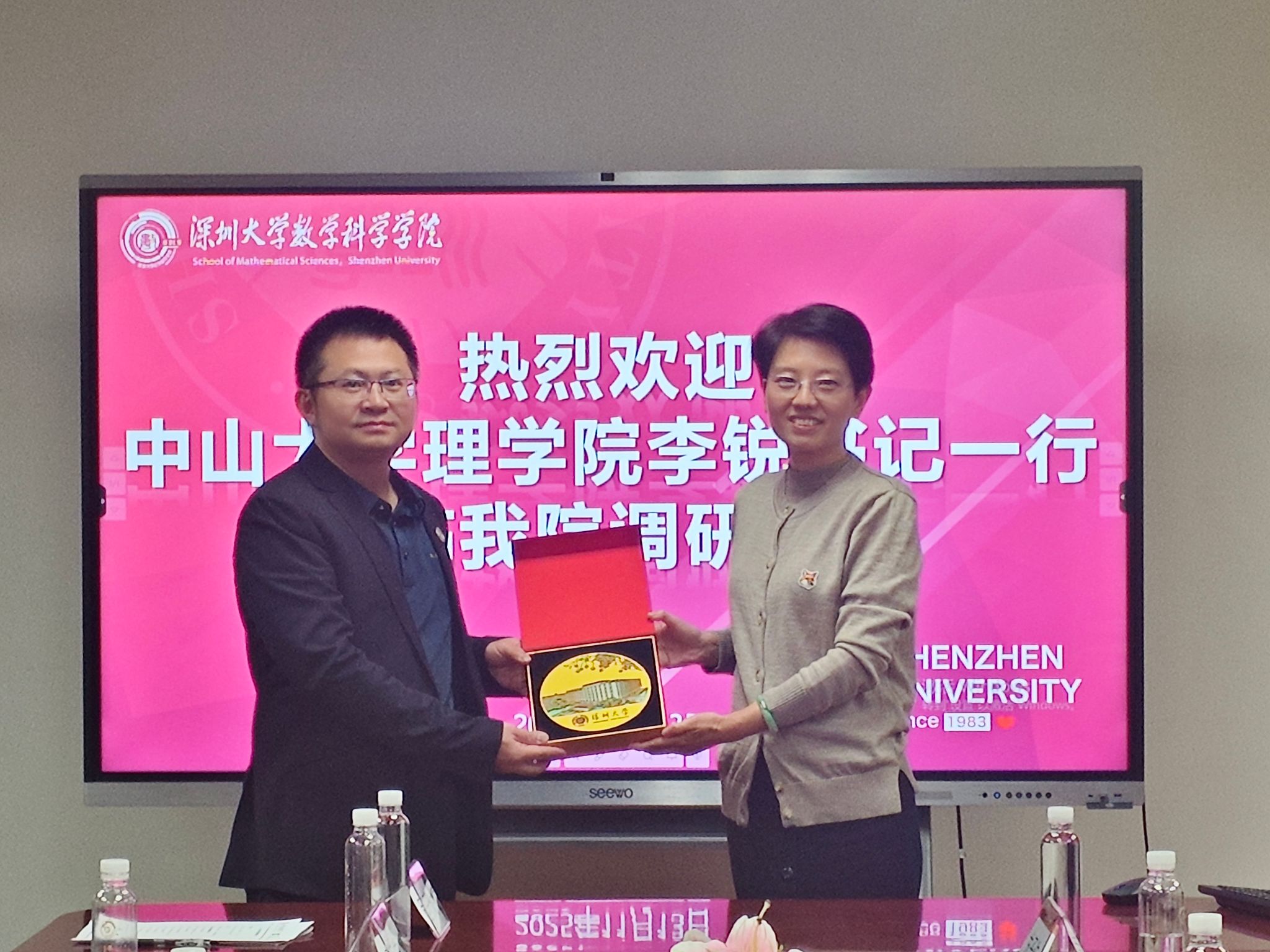 的热情接待表示感谢,并介绍了中山大学理学院的党风廉政建设和党员队伍情况。中山大学理学院主持工作的殷朝阳副院长介绍了本院数学和物理学科的发展历程,在师资队伍、学科平台建设,人才培养等方面的举措与成效。他表示,学院秉承“德才双修、顶天立地,知行合一、勇立潮头”的学院文化,践行“平台引才、事业聚才、产研育才”理念,深入践行拔尖创新数理人才培养等。