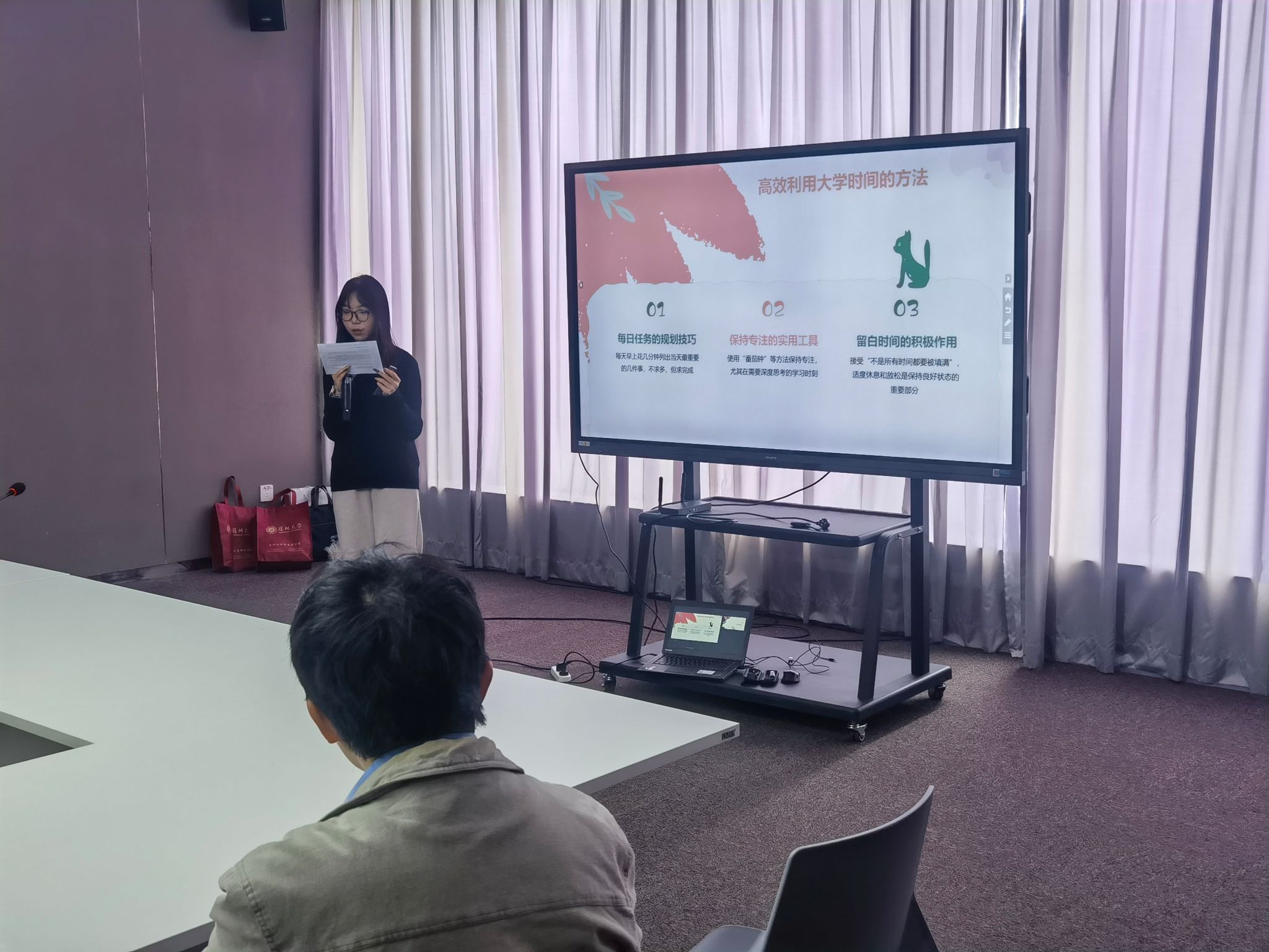数学与应用数学(卓越班)24级黄雅琪同学分享了自己的一些大学经验,提到了大学与高中学习方式的不同,讲述了自己对于时间和精力的管理,以便于在课堂外参加社团、学生工作以及志愿活动,以此来提高自己。