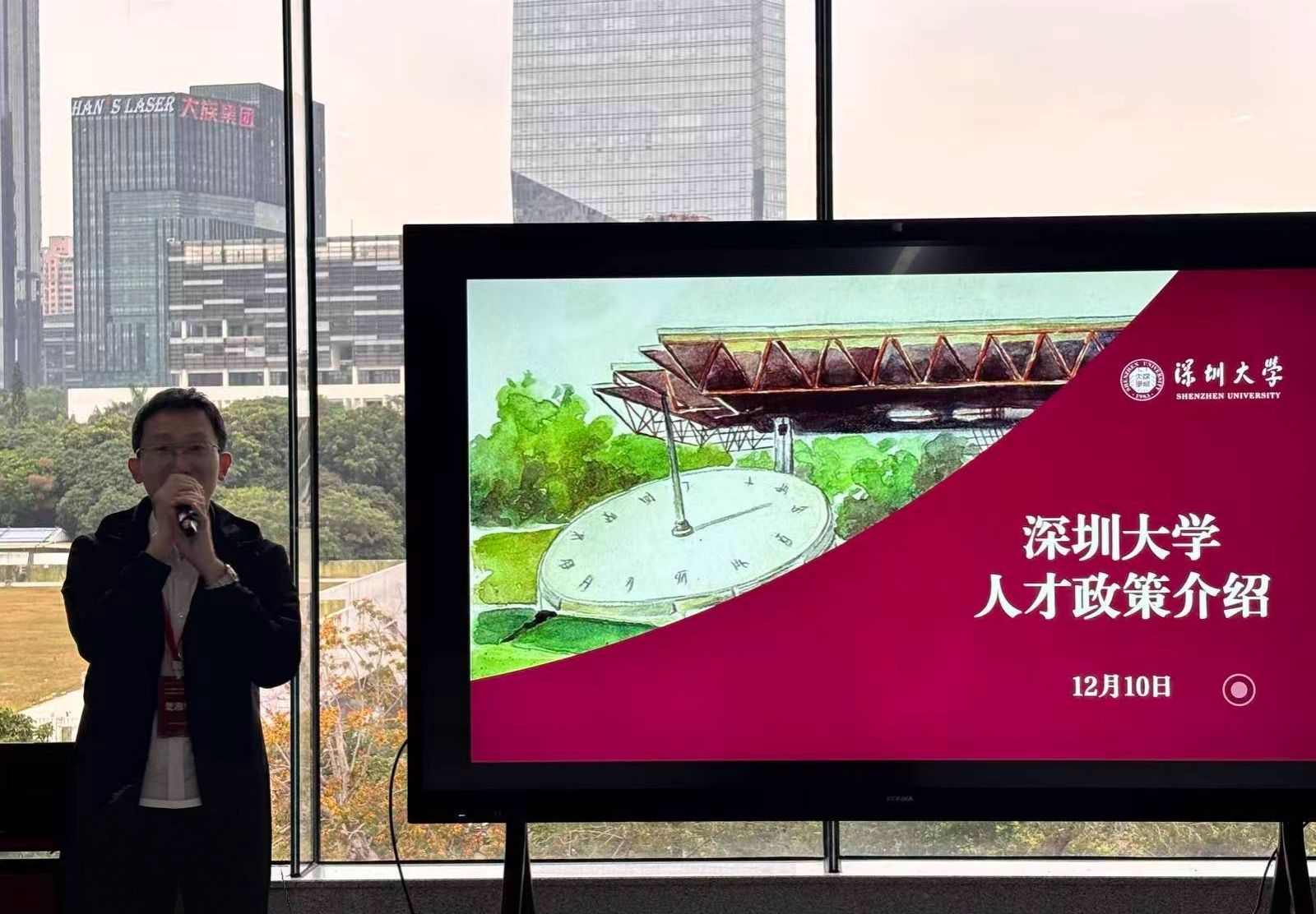 会上,人力资源部副主任楚湘华详细解读了学校人才政策。他强调,深圳大学始终坚守 “以人为本” 理念,从职业规划引导、科研项目支持、具有竞争力的薪酬体系、高端实验平台等多维度,为引进人才构建全方位、立体化的发展保障体系。依托深圳独特的区位优势与校园浓厚的科研创新氛围,学校人才吸引力持续增强,诚挚邀请海内外优秀学者加盟,共筑发展蓝图。